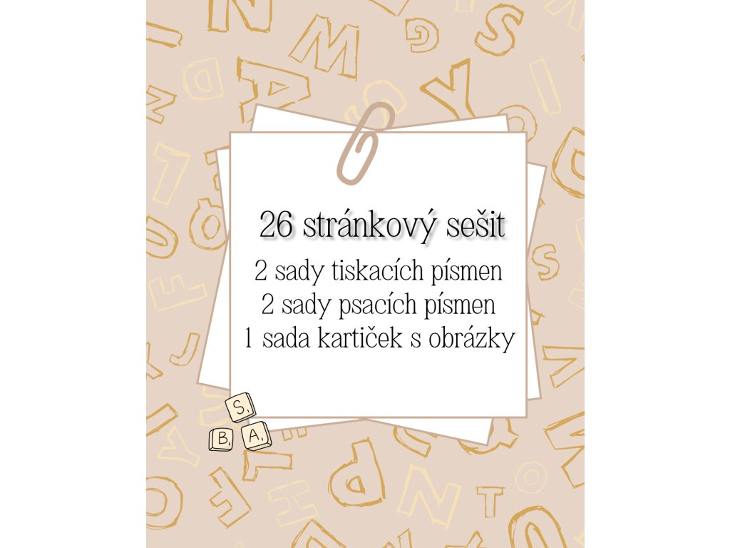 26 stránek, na kterých se malý předškolák naučí (vyzkouší) psát jak tiskací, tak psací písmena a následně je podle obrázků zkusí poznat v praxi.
