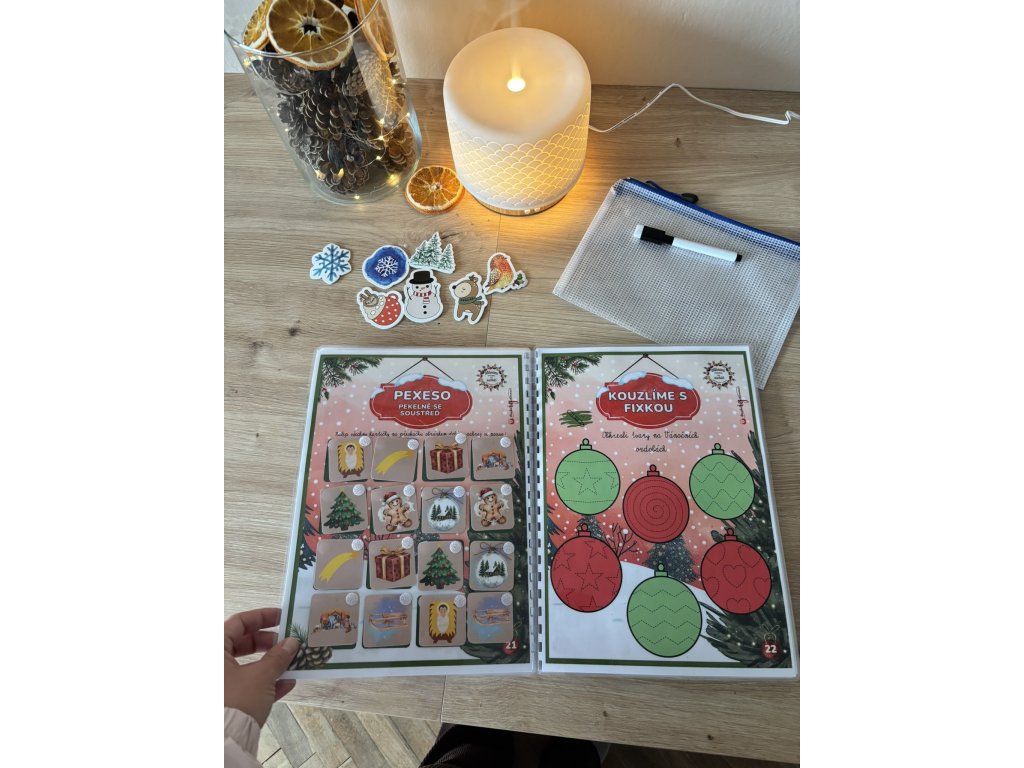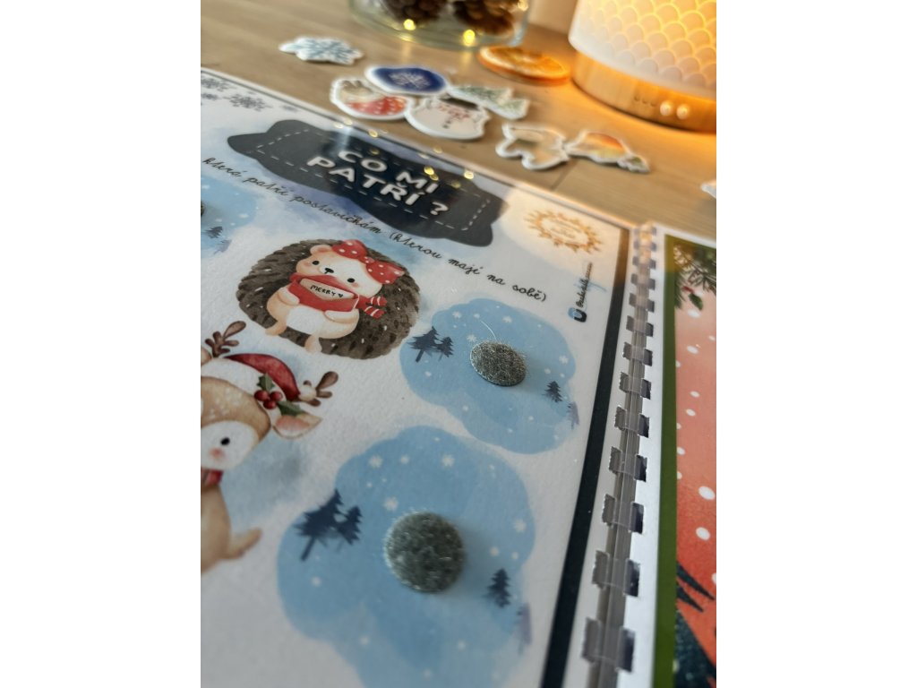 Díky barevným kartičkám, které se lepí pomocí suchého zipu, jednoduchým úkolům a veselým ilustracím se děti učí hravou cestou, a přirozeně si rozvíjejí jemnou motoriku, logické myšlení, paměť i soustředění.